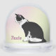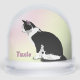 Personalise this snow globe with a pet's name, or any text and you can change the background on this design featuring original art of a black and white bicolored "Tuxedo" Cat. This original artwork of a tuxedo kitty was inspired by the artist's own cats.