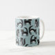 Cute black and white tuxedo cats going about their business. A fun pattern on a mid blue background.