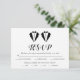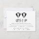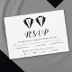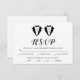 Black and white tuxedo two grooms gay wedding RSVP response card. This elegant wedding design features a sophisticated black and white design, specifically tailored for a Mr & Mr gay wedding. The primary visual element thoughtfully showcases the upper portion of two gentlemen's formal suits, complete with distinguished bow ties, indicating the attire of the two grooms.