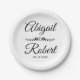Black and white typography and flowers wedding paper plate