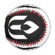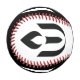 A black and white baseball featuring the Unitarian Universalist religion's chalice symbol in white and black, respectively.