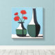 Canvas in a modern, Boho style, minimalist illustration of two black and white vase holding red flowers