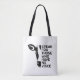 This "Speak for Those Who Have No Voice" tote bag features a cow with black lettering.