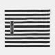 A custom black and white vertical stripe fleece blanket with a spot for your name or your gift recipients name.