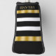 Black and white vertical stripes gold accents golf head cover