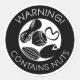 Black and White Warning Contains Nuts Symbol Peanut and Tree Nut Allergy Alert Stickers. Label foods with a peanut and tree nut ingredient warning. Great for bake sales, pot lucks and around the house to put on snacks or baked goods. Black and white design with text stating WARNING CONTAINS NUTS. Designs by Lil Allergy Advocates www.lilallergyadvocates.com