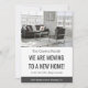 This modern moving announcement features an option to add a family photo or a photo of your new home.