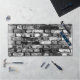 Black and White Weathered Brick Wall Desk Mat Pad