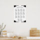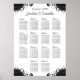 © Sunny Mars Designs - Floral Hibiscus: Black on White Wedding Seating Charts For 14 Tables - Trendy, stylish, modern, elegant, classy, chic custom Gothic wedding table seating chart template with Goth black swirly floral tropical hibiscus design. For fourteen tables.