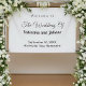 A classic and timeless banner that can complement various wedding themes. It is also suitable for couples who prefer a text based design without background elements for readability. The black texts contrasting on the white background also improves readability. The texts are center aligned and the fonts used are calligraphy, script and sans serif. Calligraphy and script fonts are used to enhance the design while the sans serif font is used to enhance readability. Customize it by typing the names of the bride and groom, date and location of the wedding. You can also change the contents or wordings in the design tool including the font style, font color and background color. Please check the appearance after typing texts. If the appearance is pleasing to you, you can place your order now. If you need to resize or reposition the texts, please adjust in the design tool. A banner to welcome guests and enhance the wedding venue. To the bride and groom, congratulations on your engagement! Wishing you both a lifetime filled with love and happiness.