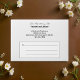 A wedding envelope with black text on white background for couples seeking a classic and timeless color combination that can complement various wedding themes. It is also suitable for couples who prefer a text based design without background elements for readability. The black text contrasting on the white background also improves readability. The text is center aligned and the fonts used are calligraphy, script and sans serif. Calligraphy and script fonts are used to enhance the design while the sans serif font is used to enhance readability. Customize it by typing the names of the bride and groom and return address. Please check the appearance of the front side and the flap after typing text. If the appearance is pleasing to you, you can place your order now. If you need to resize or reposition the text to fit in the template, please adjust in the design tool. You can also change the font style and font color in the design tool. To the bride and groom, congratulations on your engagement! Wishing you both a lifetime filled with love and happiness.