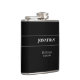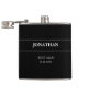 Wedding flask with black and white colours and customised name and date. Purchase a flask for all the groomsmen as a wedding party gift. You can customise with groom, groomsmen, best man or make up your own funny message to add to this one of a kind flask.