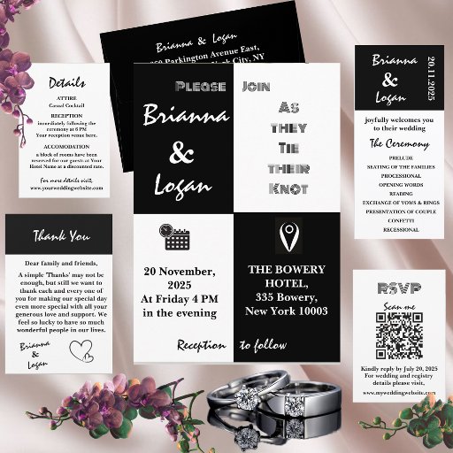 Are you planning a MODERN, STYLISH & a LAID-BACK casual wedding, then my Black & White Contemporary Wedding collection will suite your needs better. Though it's simple, the contrasting black & white combination portrays classic sophistication for this modern era. You can personalise this stylish template to your own needs.