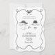 Stylish black and white wedding invitation with a hand-drawn doodle bow, couple, and elegant modern calligraphy script. Add your QR code for RSVP online and wedding website for more info. A perfect blend of chic and romantic charm.