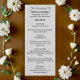 A wedding menu card with black text on white background for couples seeking a classic and timeless color combination that can complement various wedding themes. It is also suitable for couples who prefer a text based design without background elements for readability. The black text contrasting on the white background also improves readability. The text is center aligned and the fonts used are calligraphy, script and sans serif. Calligraphy and script fonts are used to enhance the design while the sans serif font is used to enhance readability. Customize it by typing the names of the bride and groom, date, location and menu details. You can also change the wording in the design tool including the font style, font color and background color. Please check the appearance of the front and back sides after typing text. If the appearance is pleasing to you, you can place your order now. If you need to resize or reposition the text, please adjust in the design tool. To the bride and groom, congratulations on your engagement! Wishing you both a lifetime filled with love and happiness.