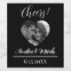 Modern black and white minimalist personalised photo, names and wedding date Cheers wine or champagne bottle label.