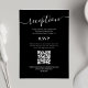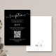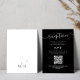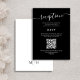 Guide your guests with ease using this elegant wedding reception card and RSVP response insert, designed in classic black and white for timeless sophistication. Featuring a refined calligraphy script and a personalised bride and groom monogram, this reply card includes a convenient QR code linking directly to your wedding website. A perfect blend of style and function, it ensures a seamless response process while adding a polished touch to your wedding stationery suite.