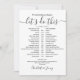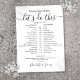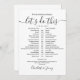 This stylish black and white wedding schedule timeline can be personalised with your wedding details in chic lettering. Designed by Thisisnotme©