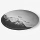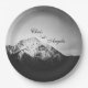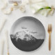 Black and white wedding under the mountains. Landscape photograph of a snow covered mountain with darkness below and white cloudy sky above. Names of the couple are in black font above the mountain in the sky and all the details are in white font below the mountain. Completely customisable and personalizable wedding products.