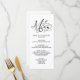 This elegant menu features whimsical flourish black typography on a white background. You can add your details in the customise menu. This menu is part of a beautiful matching wedding suite that can be fully personalised.