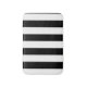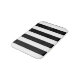 This bath mat features a classic wide stripe pattern in black and white for an elegant look.