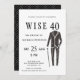 Black tie stylish elegant and funny black and white milestone man birthday party invitation with a black suit silhouette with walking stick. ++++++++++ A classy geometric pattern on the reverse. ++++++++++ Easy to personalise with your details!