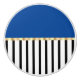 Add a pop of pizzaz to your decor. This design works well with most decors and patterns. The bottom three-thirds of the design is black and whites stripes with the remaining portion in a solid blue. Pulling this look together is a gold coloured ribbon.