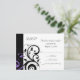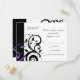 Small RSVP card to match our black and white purple reverse swirl wedding invitation, with bold graphic swirl scroll leaf background. Customise online with your wedding details.
