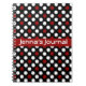 Bold red and white polka dots on a black background. Personalise with your choice of text.
