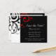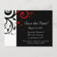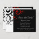 Bold and striking modern contemporary black wedding and stationery set with black and white with red accents, with delicate swirl scroll leaf background. Customise online with your wedding details. his item is avaliable as a complete wedding collection including invitations, RSVP cards, Save the Dates, Magnets, Stickers, Table Place Cards, Wedding Planning and Photo Album Binders and More!