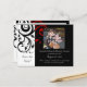 Bold and striking modern contemporary black wedding and stationery set with black and white with red accents, with delicate swirl scroll leaf background. Customise online with your wedding details. his item is avaliable as a complete wedding collection including invitations, RSVP cards, Save the Dates, Magnets, Stickers, Table Place Cards, Wedding Planning and Photo Album Binders and More!