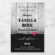 Make a lasting impression with this modern and quality product label design featuring a stylish white wood grain look with a cute pink tiny heart graphic. Matching an elegant silver decor border on a black background.