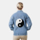 Black and white Yin Yang logo denim jacket. Cool jeans jacket with custom colour Ying Yang symbol.
