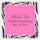 Black and White Zebra Print and Hot Pink Thank You Square Sticker