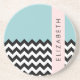 Black and White Zigzag, Chevron, Blue, Your Name Coaster