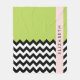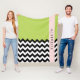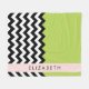 Black and White Zigzag, Chevron, Green, Your Name Fleece Blanket