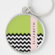 Black and White Zigzag, Chevron, Green, Your Name Key Ring