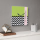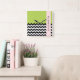 Black and White Zigzag, Chevron, Green, Your Name Square Wall Clock