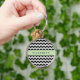 Black and White Zigzag, Chevron Pattern, Your Name Key Ring