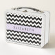 Black and White Zigzag, Chevron Pattern, Your Name Metal Lunch Box