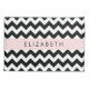 Black and White Zigzag, Chevron Pattern, Your Name Pillowcase