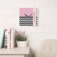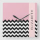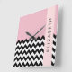 Black and White Zigzag, Chevron, Pink, Your Name Square Wall Clock