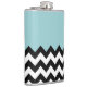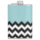 Black and White Zigzag Pattern, Chevron, Blue Hip Flask