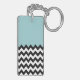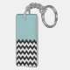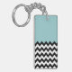 Black and White Zigzag Pattern, Chevron, Blue Key Ring