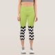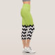 Black and White Zigzag Pattern, Chevron, Green Capri Leggings