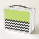 Black and White Zigzag Pattern, Chevron, Green Metal Lunch Box