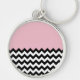 Black and White Zigzag Pattern, Chevron, Pink Key Ring