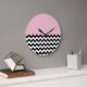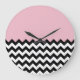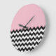 Black and White Zigzag Pattern, Chevron, Pink Large Clock