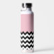 Black and White Zigzag Pattern, Chevron, Pink Water Bottle
