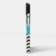 Elegant and classic black and white pattern. Black and white chevron zigzag pattern on the bottom and solid black on the top divided by a cyan blue stripe. Use the template to personalise with your name or message in black script font.